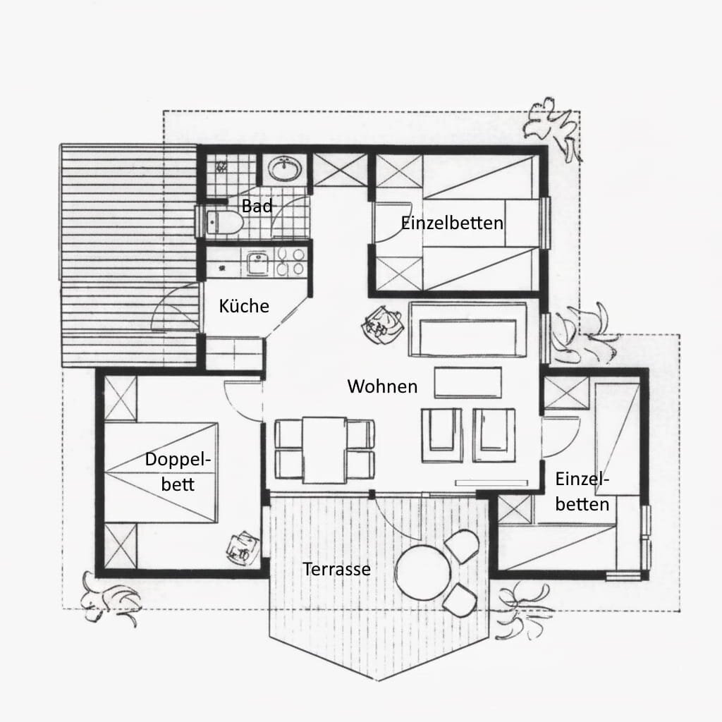 Ferienhaus Typ C mit 3 Zimmern für 6 Personen