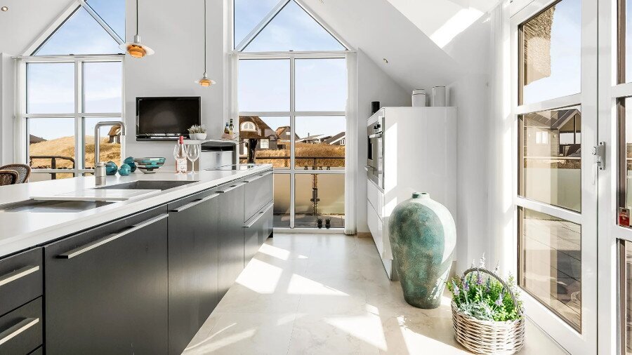 Das Ferienhaus verbindet hochwertige Ausstattung mit einer warmen, einladenden Atmosphäre. Große Fensterflächen lassen viel Licht in den offenen Wohn- und Essbereich und eröffnen schöne Ausblicke auf die Dünenlandschaft. Die moderne Küche ist bestens ausgestattet und ermöglicht euch komfortables Kochen auch im Urlaub. Im Souterrain stehen euch drei Schlafzimmer zur Verfügung, zwei verfügen über einen direkten Zugang zur Terrasse. Mehrere Bäder – teils en suite – geben viel Raum und Privatsphäre.