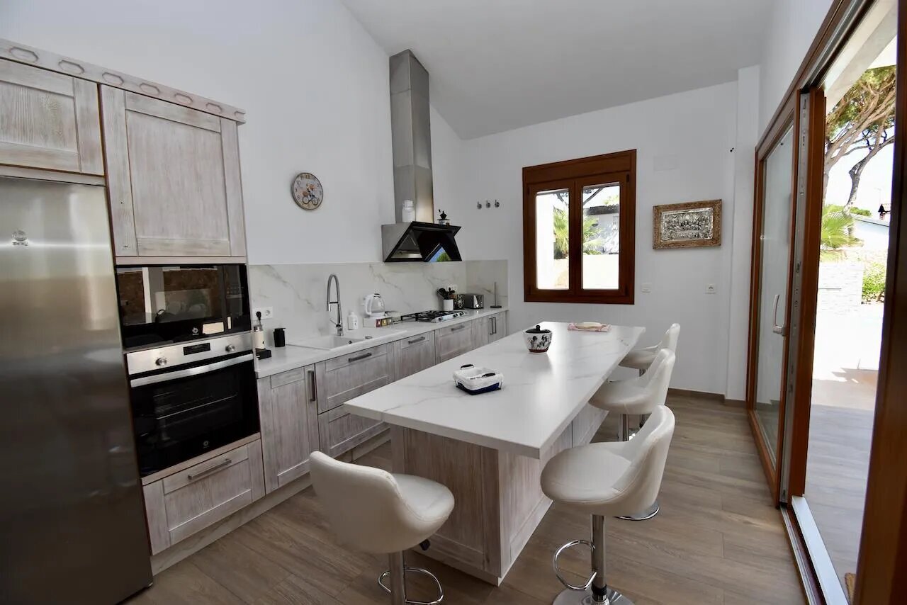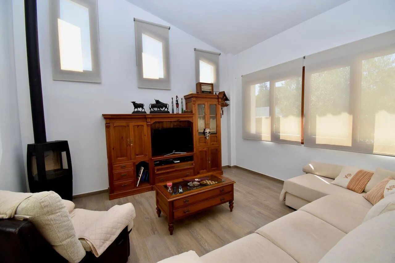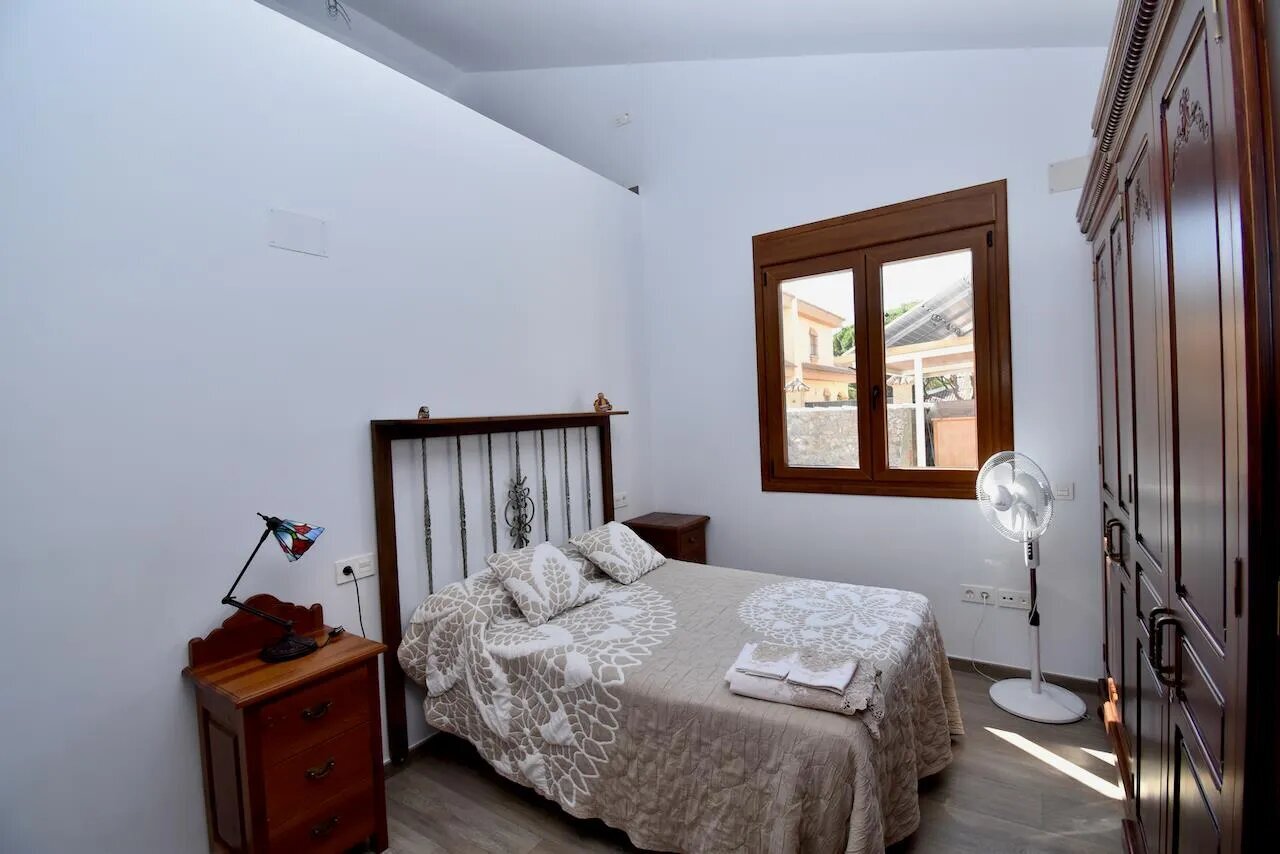 Die Villa verfügt über insgesamt vier Schlafzimmer und drei Badezimmer, die sich auf das Haupthaus und ein separates Gartenhaus verteilen. Im Haupthaus befinden sich ein gemütliches Wohnzimmer mit Klimaanlage, Fernseher und Kamin, eine offene, gut ausgestattete Küche sowie drei Schlafzimmer und zwei Badezimmer. Das Gartenhaus bietet ein weiteres Schlafzimmer und ein zusätzliches Badezimmer und eignet sich ideal für Gäste, die etwas mehr Privatsphäre wünschen.