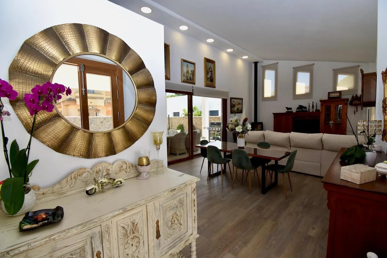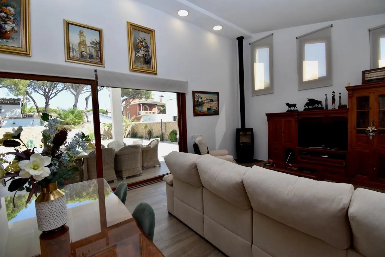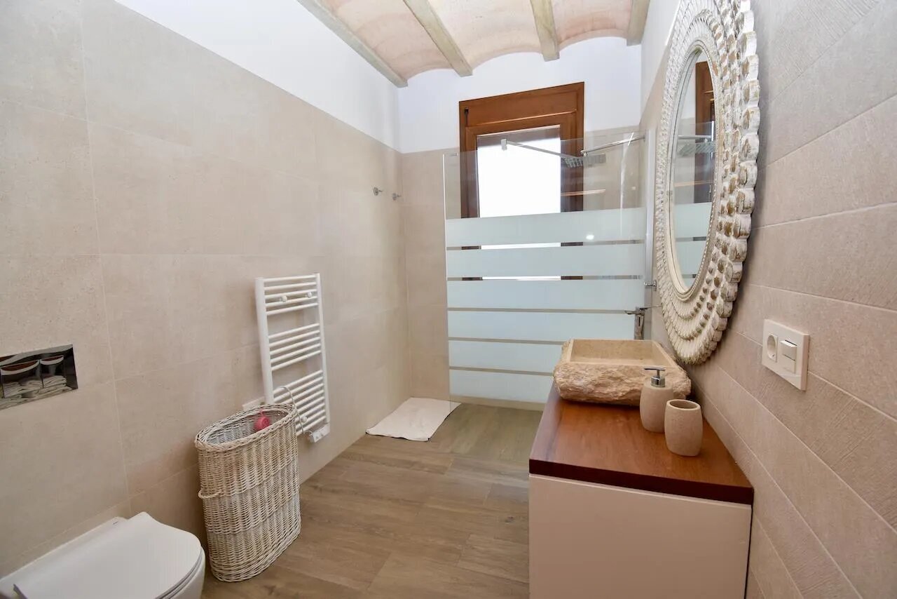 Die Villa verfügt über insgesamt vier Schlafzimmer und drei Badezimmer, die sich auf das Haupthaus und ein separates Gartenhaus verteilen. Im Haupthaus befinden sich ein gemütliches Wohnzimmer mit Klimaanlage, Fernseher und Kamin, eine offene, gut ausgestattete Küche sowie drei Schlafzimmer und zwei Badezimmer. Das Gartenhaus bietet ein weiteres Schlafzimmer und ein zusätzliches Badezimmer und eignet sich ideal für Gäste, die etwas mehr Privatsphäre wünschen.