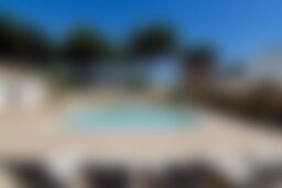 Der Außenbereich lädt mit einem gepflegten Garten, Rasenflächen und Bäumen zum Entspannen ein. Der private Pool (8 × 4 Meter) bildet das Herzstück des Gartens. Mehrere überdachte Terrassen, ein Grillbereich, eine Außendusche sowie gemütliche Sitz- und Essbereiche im Freien schaffen ideale Bedingungen für entspannte Urlaubstage im Freien. Auf dem eingezäunten Grundstück stehen zudem drei private Parkplätze zur Verfügung.