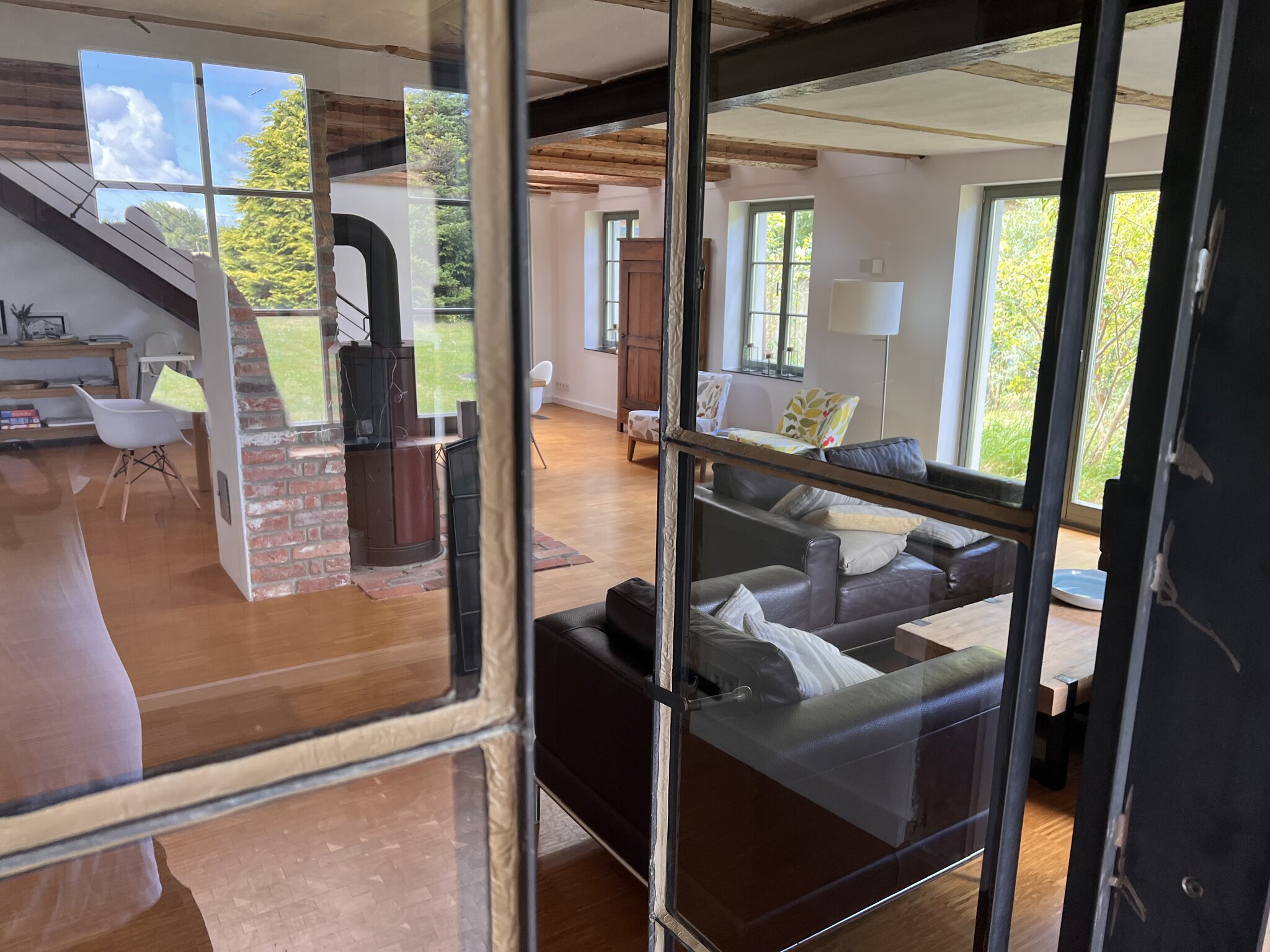Erleben Sie den besonderen Charme einer liebevoll sanierten Bauernhaushälfte aus dem Jahr 1840 - ein Ort, an dem Geschichte, Design und Natur auf einzigartige Weise verschmelzen. Hier genießen Sie Ruhe, Komfort und Inspiration - perfekt zum Entspannen, Arbeiten oder einfach Abschalten.