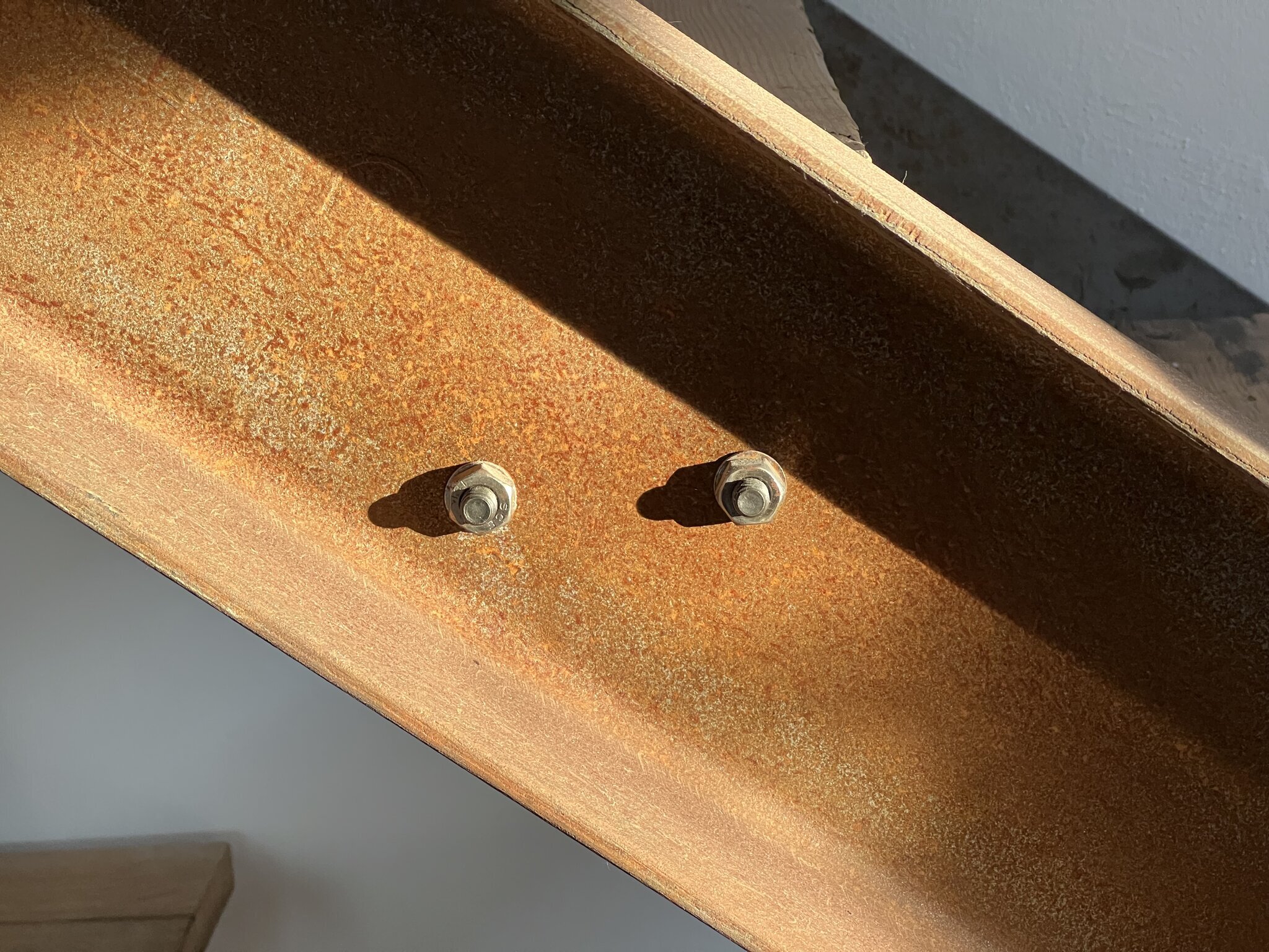 - Roheisenstahltreppe mit Bauholzbelag