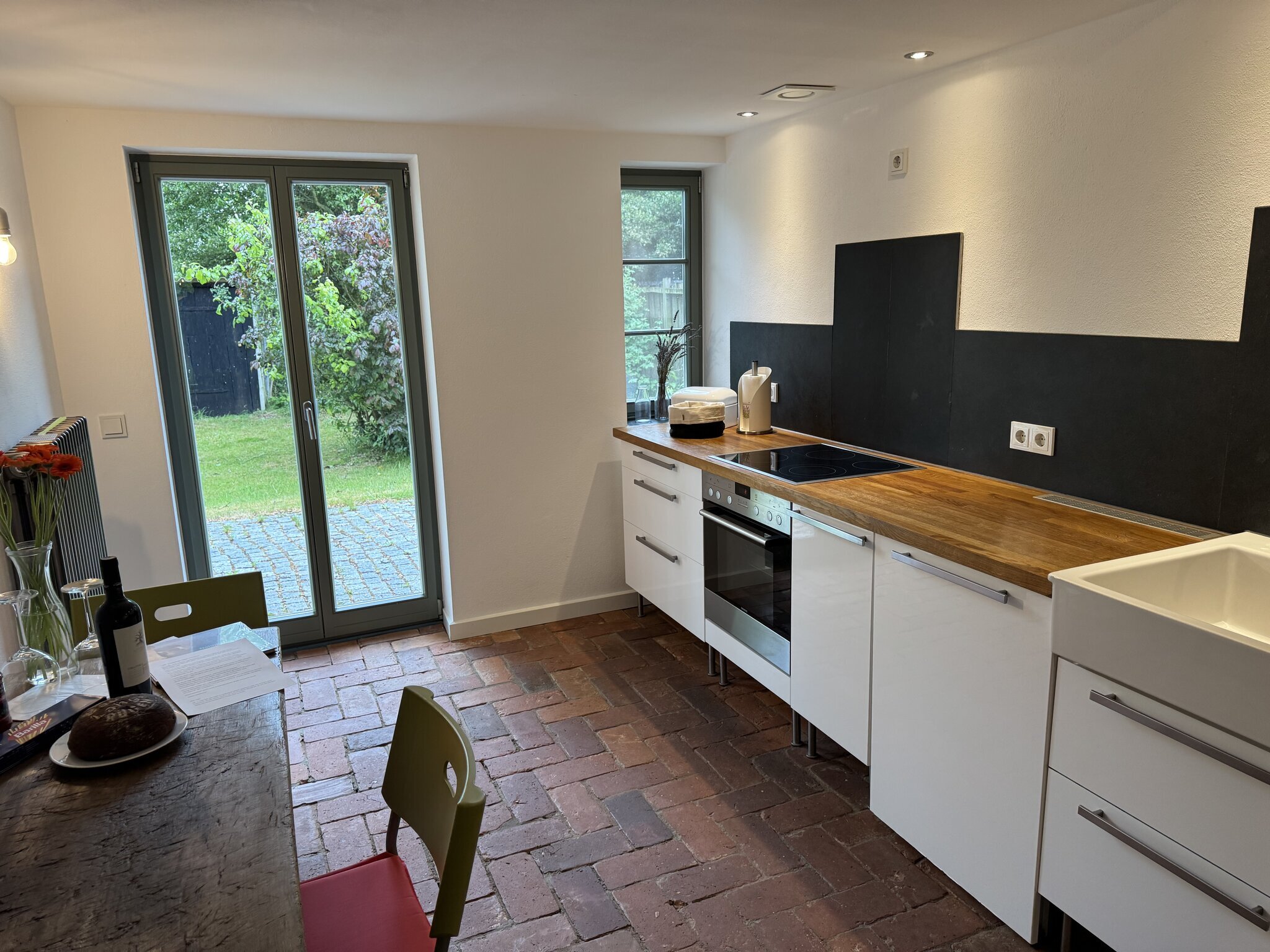 - stilvolle Küche mit historischem Ziegelboden