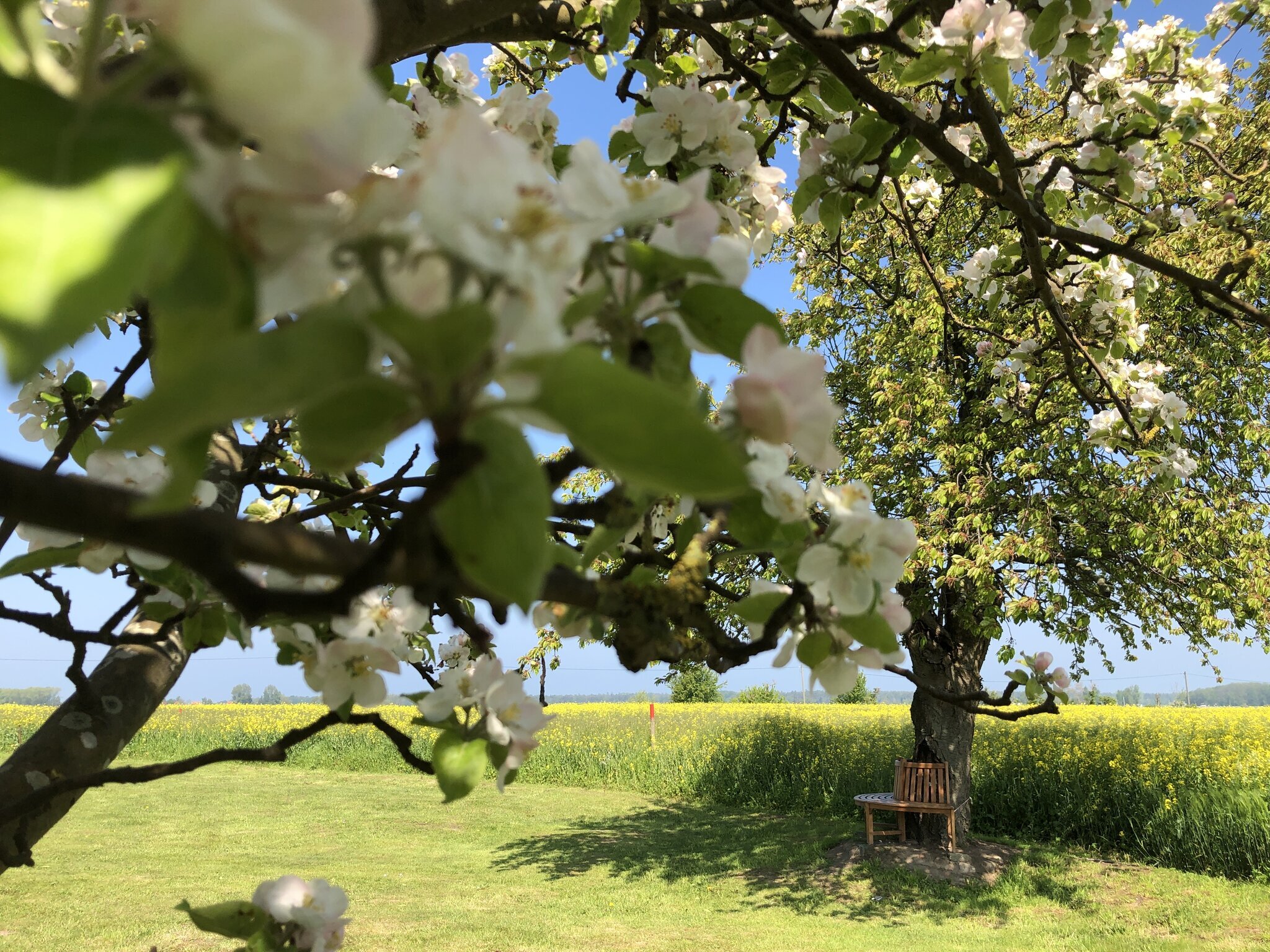 Auf dem rund 2.500 qm großen Naturgrundstück erwartet Sie eine Oase der Entspannung. Genießen Sie den Blick auf die Felder, lauschen Sie dem Rauschen einer 180 jährigen Ulme oder entspannen Sie auf einer Rundbank unter einem alten Kirschbaum bei spektakulären Sonnenuntergängen am Bodden. Im Garten warten Pflaumen, Kirschen, Äpfel, Birnen, Brombeeren und Himbeeren darauf, von Ihnen gepflückt zu werden - direkt vom Baum auf den Tisch... oder sollen es lieber die Sanddornfrüchte sein?