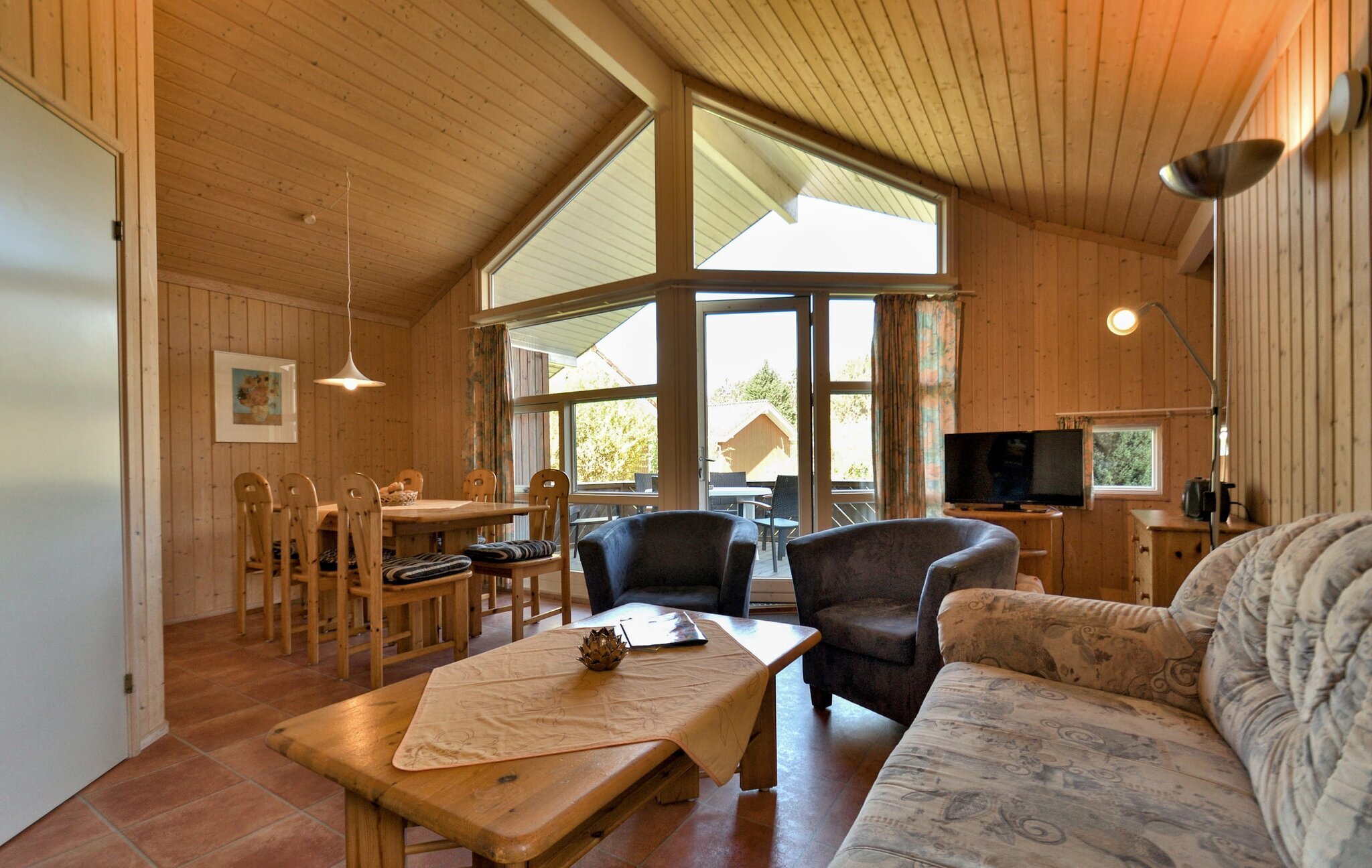 Mit ca. 53 m² Wohnfläche, zwei Schlafzimmern (eins mit Doppelbett, eins mit zwei Einzelbetten) und offenem Wohn-Essbereich ist dieses dänische Holzhaus ideal für Familienurlaub und Urlaub mit Freunden. Durch ein Alkoven, also ein kleines Doppelbett in einer Nische im Wohnbereich bietet es Platz für bis zu sechs Personen zzgl. zwei Kleinkinder bis zwei Jahre. Die voll ausgestattete Küche, die große Holzterrasse (teilüberdacht) und kostenfreies WLAN sorgen für Komfort. Haustiere sind erlaubt, Parkplatz für zwei Pkw inklusive. Weitere Annehmlichkeiten im Ferienpark, wie Waschküche, Spielplatz und Grillplatz, können gern mitgenutzt werden.