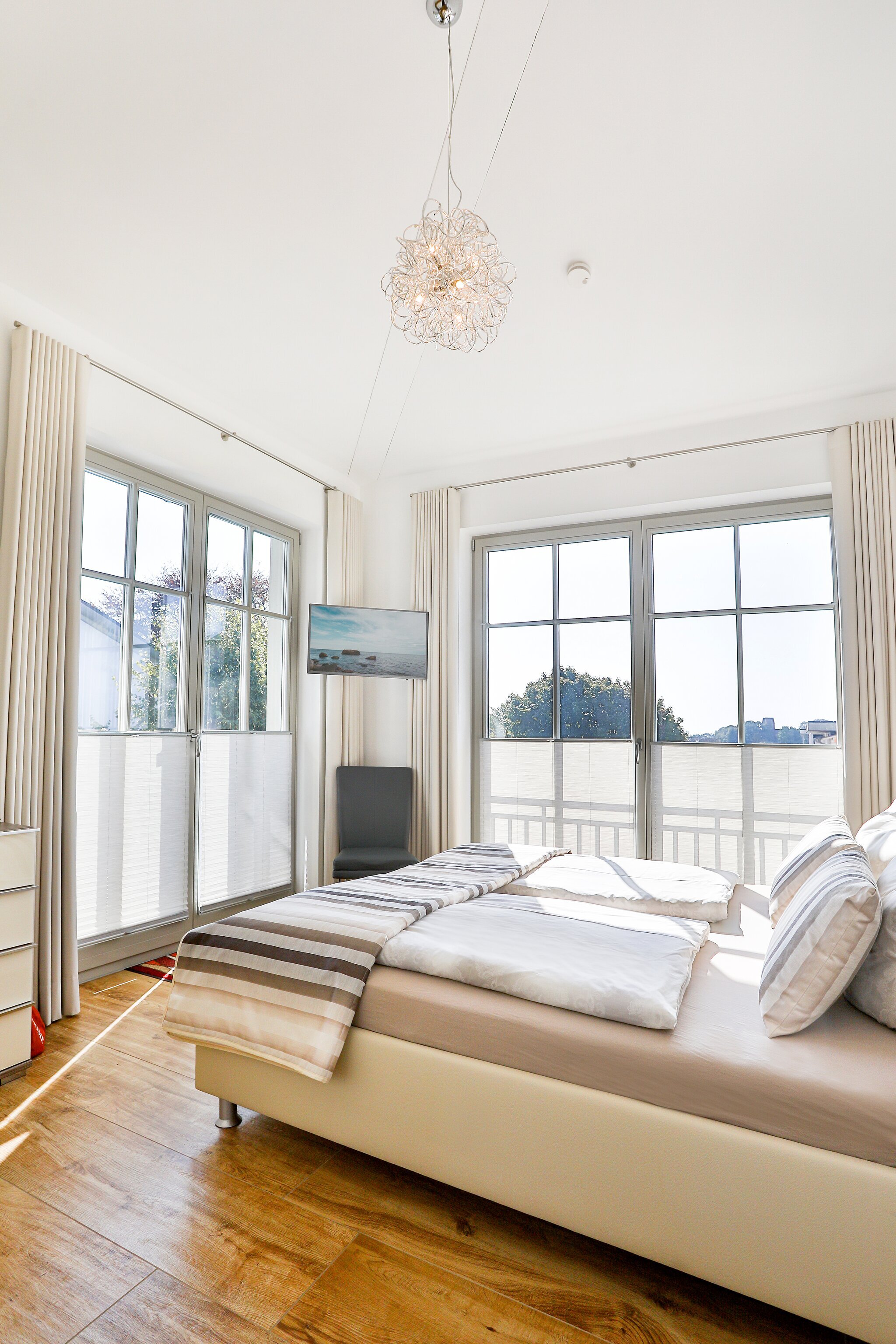 In den beiden Schlafzimmer finden Sie bequeme Betten mit Luxus-Matratzen unterschiedlicher Härtegrade H2/H3 und hochwertiger Bettwäsche.Verdunklung und Insektenschutztüren sorgen für erholsamen Schlaf. Sowohl vom Wohnraum als auch von den Schlafzimmern erreichen Sie die zwei Balkone - Insektenschutz vor den Balkontüren bewahrt Sie vor kleinen Plagegeistern.