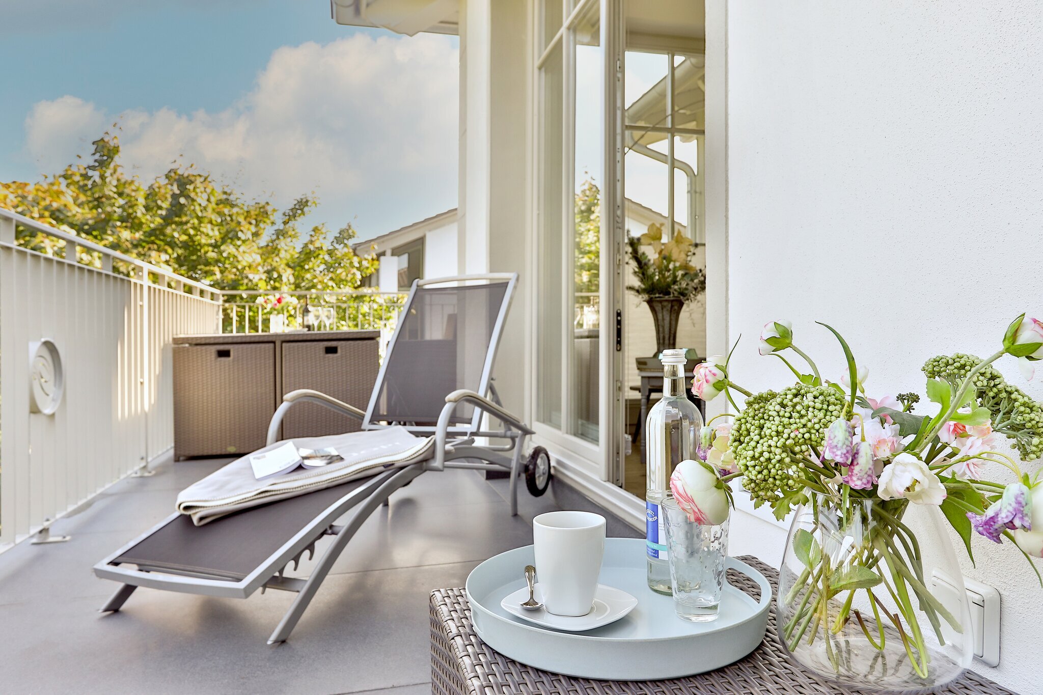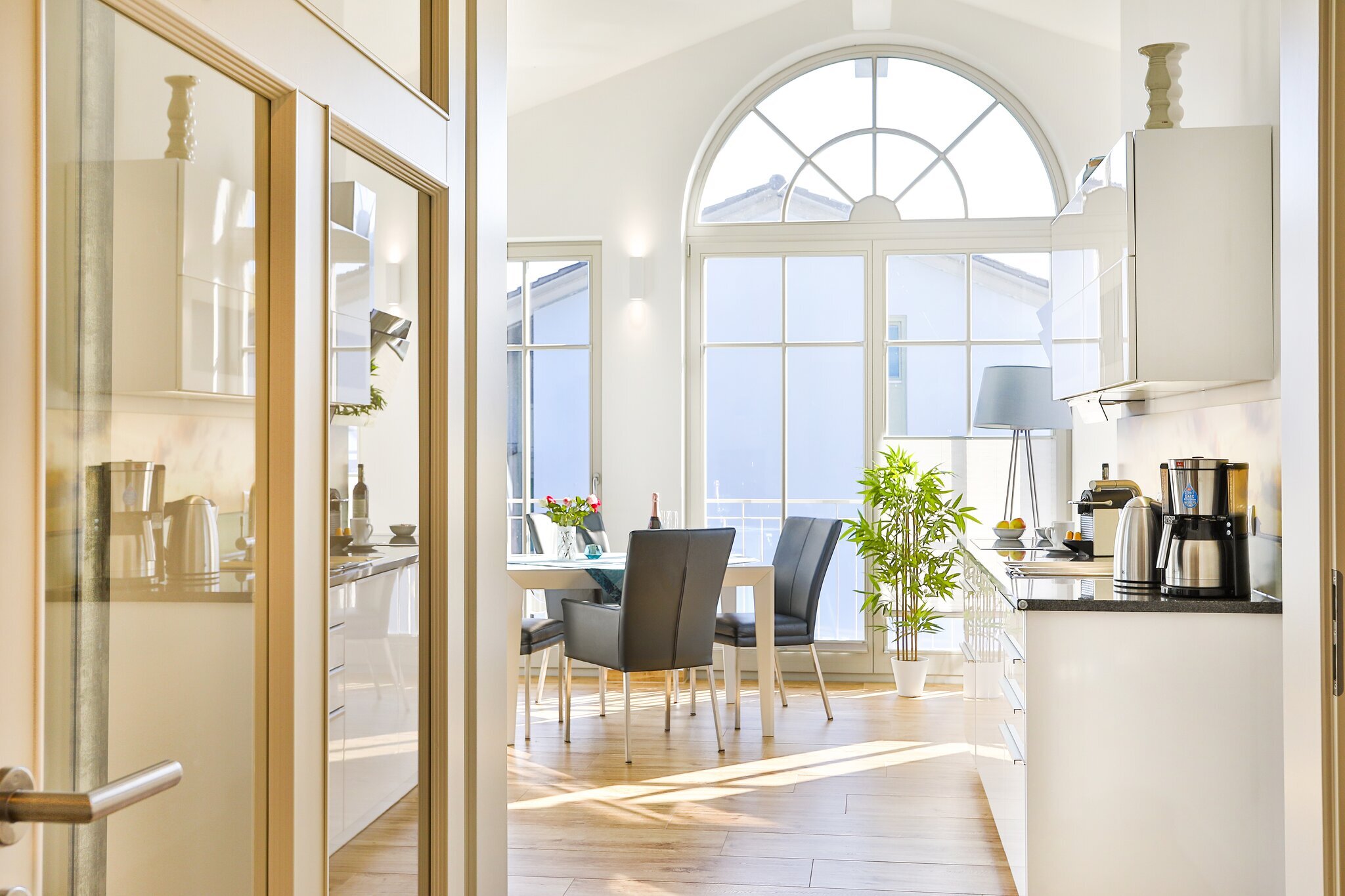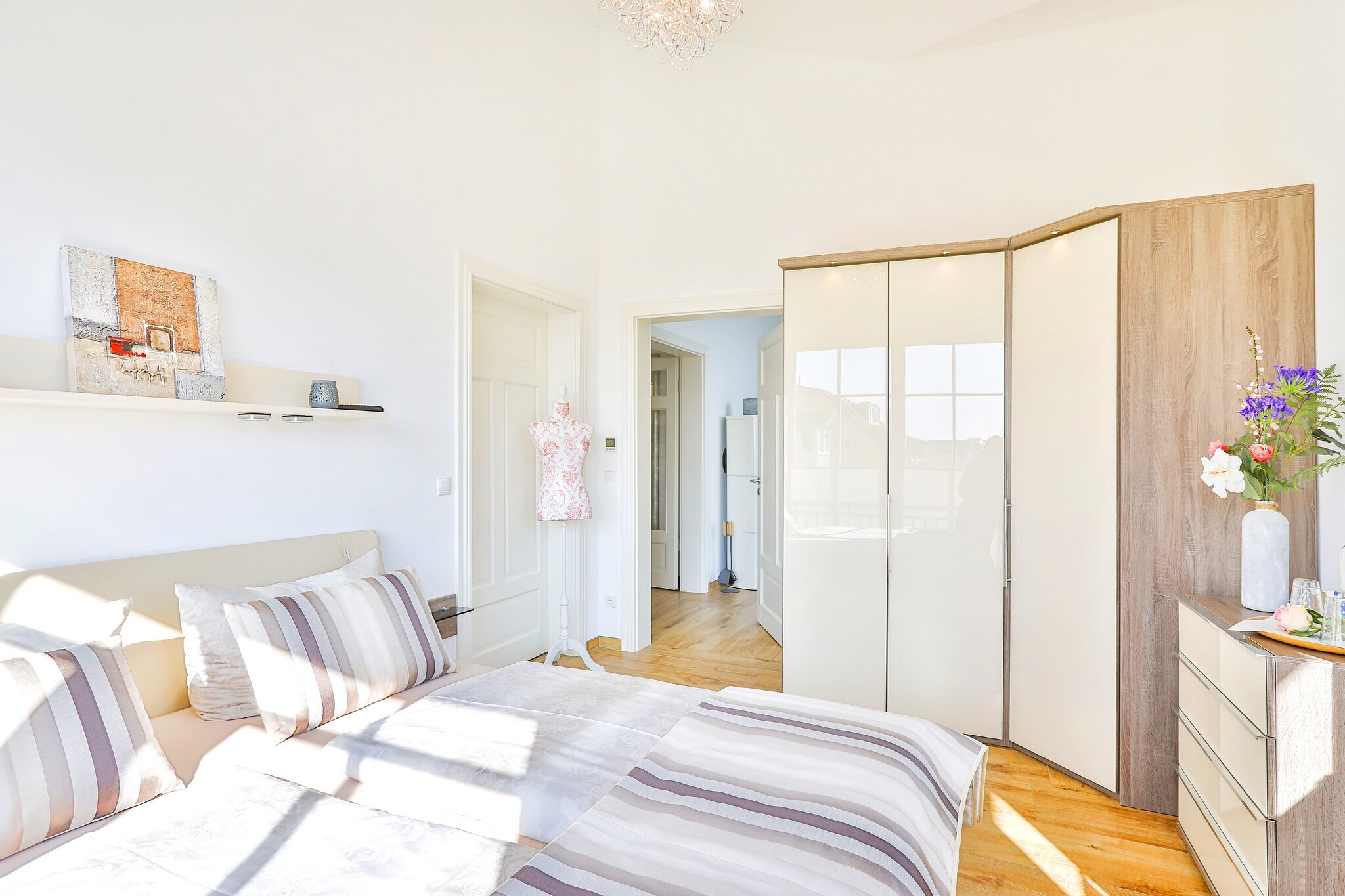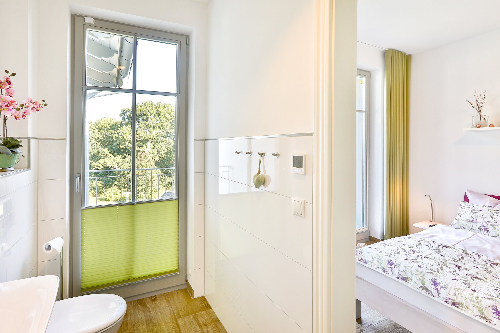 Zur Ausstattung zählen darüber hinaus eine begehbare Garderobe mit Safe, Smart-Home-Fußbodenheizung in allen Räumen, zwei kostenfreie Parkplätze sowie WLAN.